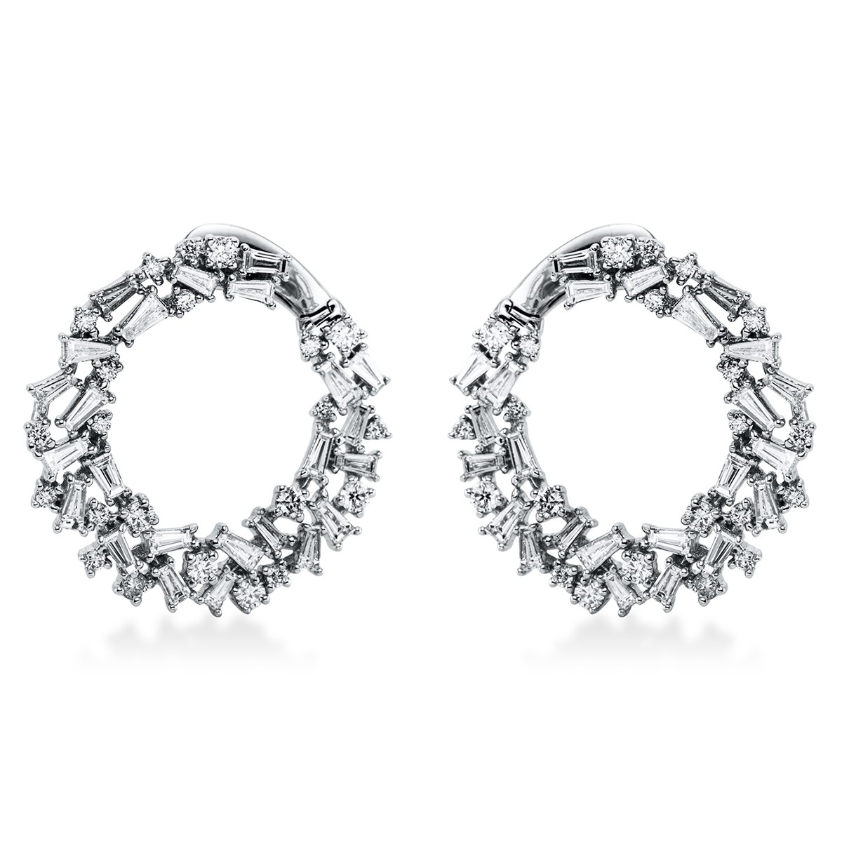 huggies 18 kt WG, 44 diamonds 0,93 ct, G-si, 48 tapers 2,12 ct, G-si, w:24,7 mm