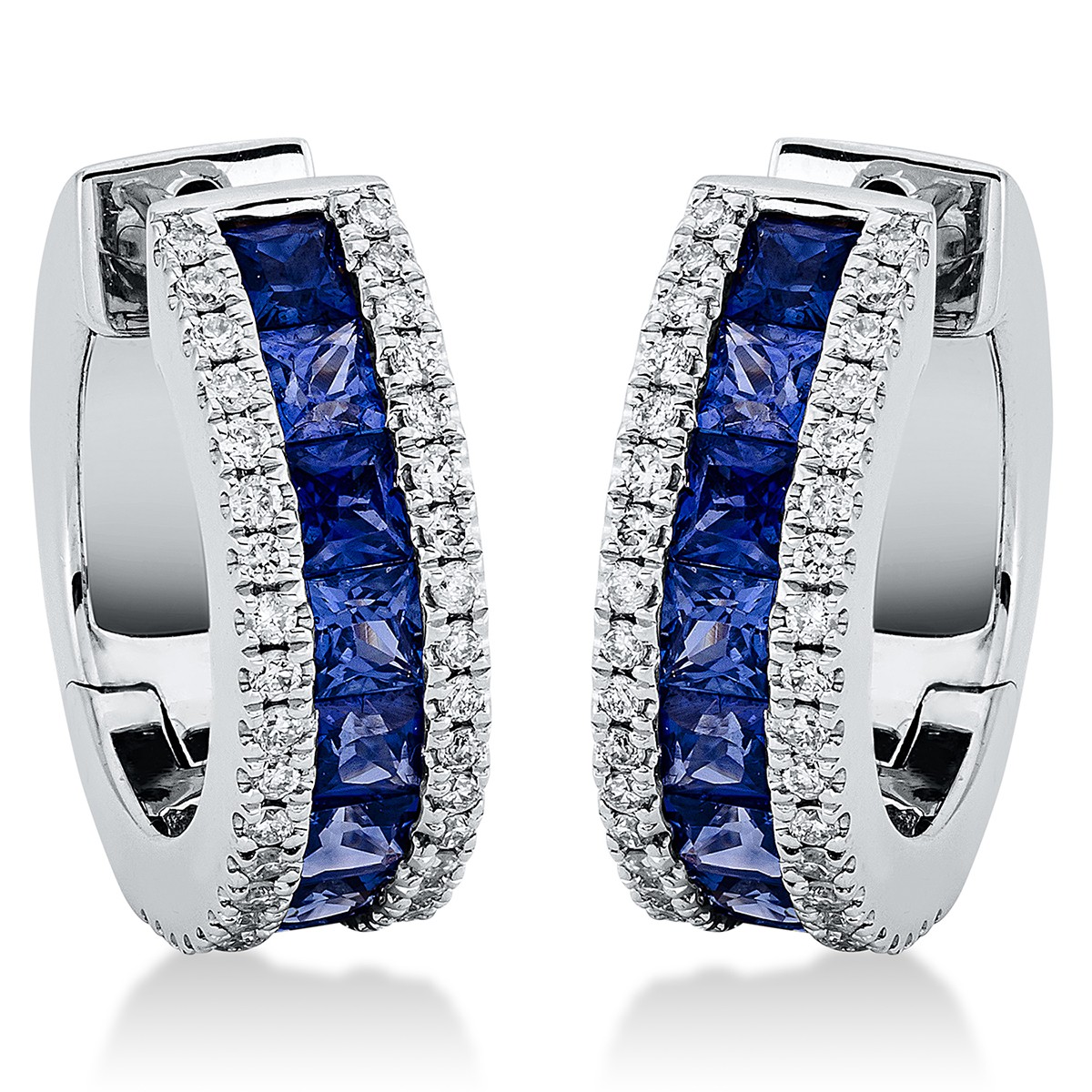 huggies 18 kt WG, 80 diamonds 0,35 ct, G-si, 18 sapphire 1,85 ct blue