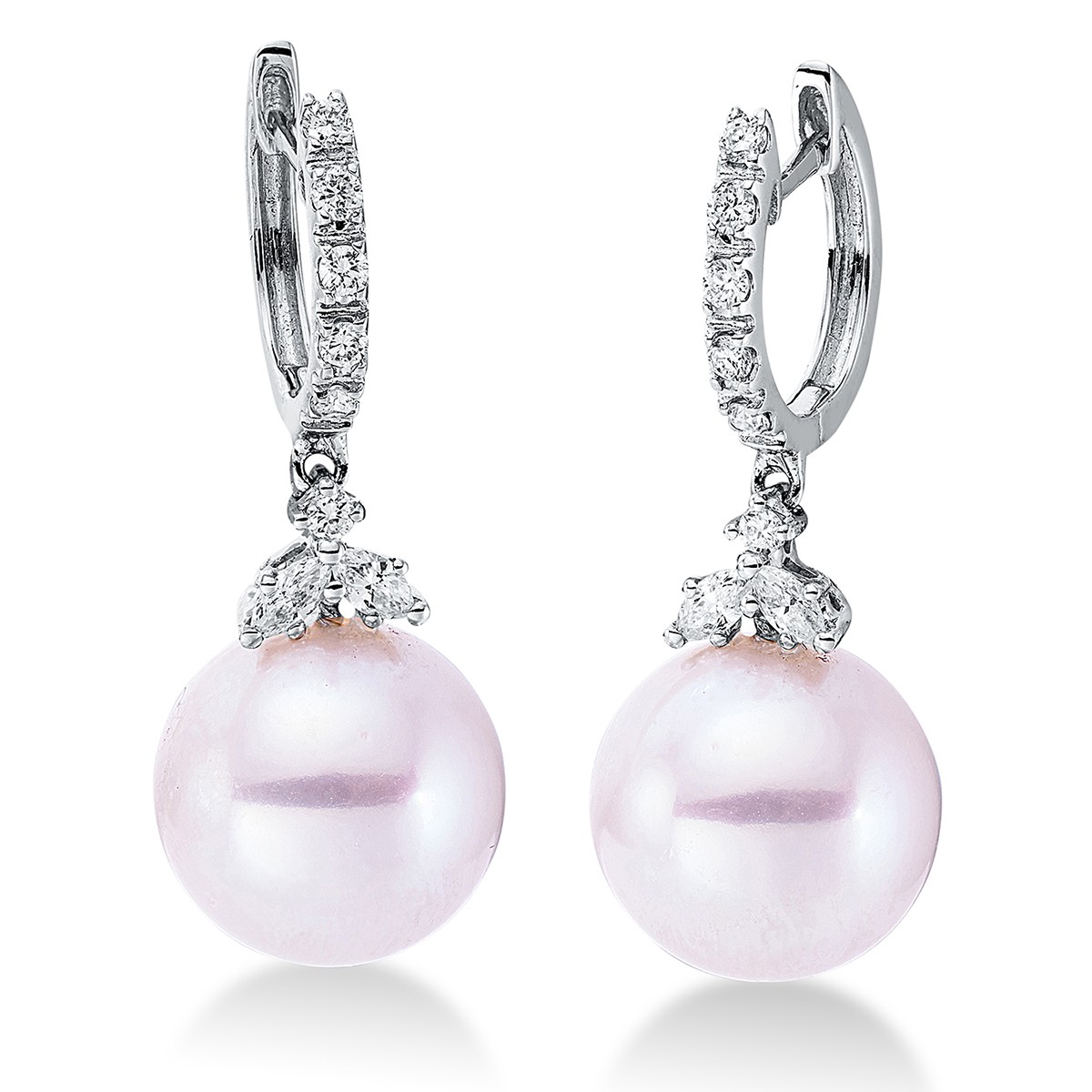 huggies 18 kt WG, 4 marquise 0,17 ct, H-si, 12 diamonds 0,19 ct, H-si, 2 FW white 11 mm