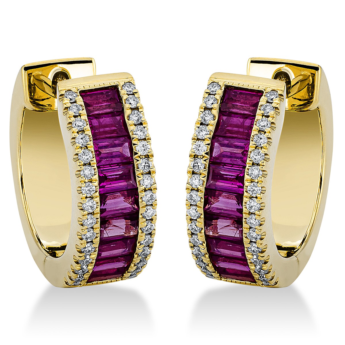 huggies 18 kt YG, 60 diamonds 0,15 ct, G-si, 18 rubies 0,99 ct red