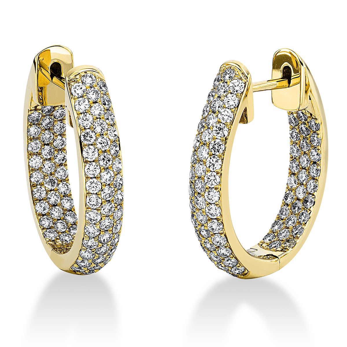 huggies 18 kt YG, 142 diamonds 1,23 ct, G-si, h:19,6 mm, w:15,6 mm, th:3,8 mm