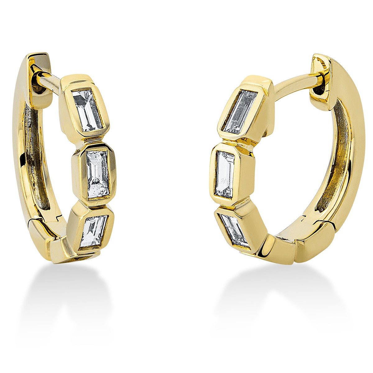 huggies 18 kt YG, 8 baguette 0,29 ct, G-si, h:12,3 mm, w:12,9 mm, th:2,4 mm