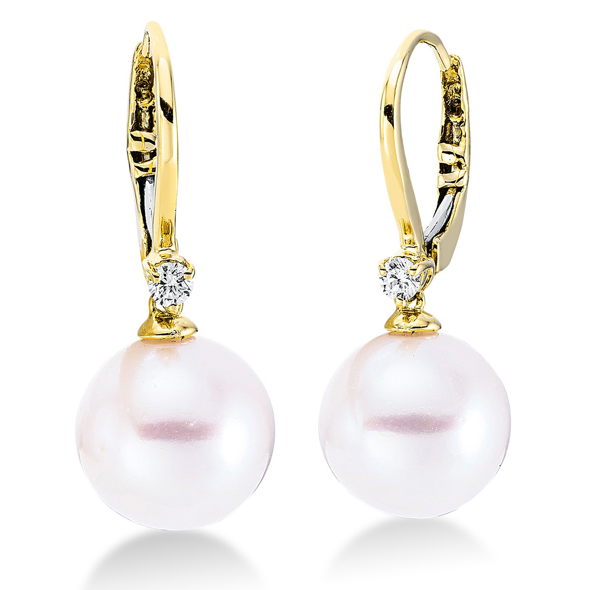 huggies 18 kt YG, 2 diamonds 0,09 ct, H-si, 2 FW white 9,5 mm