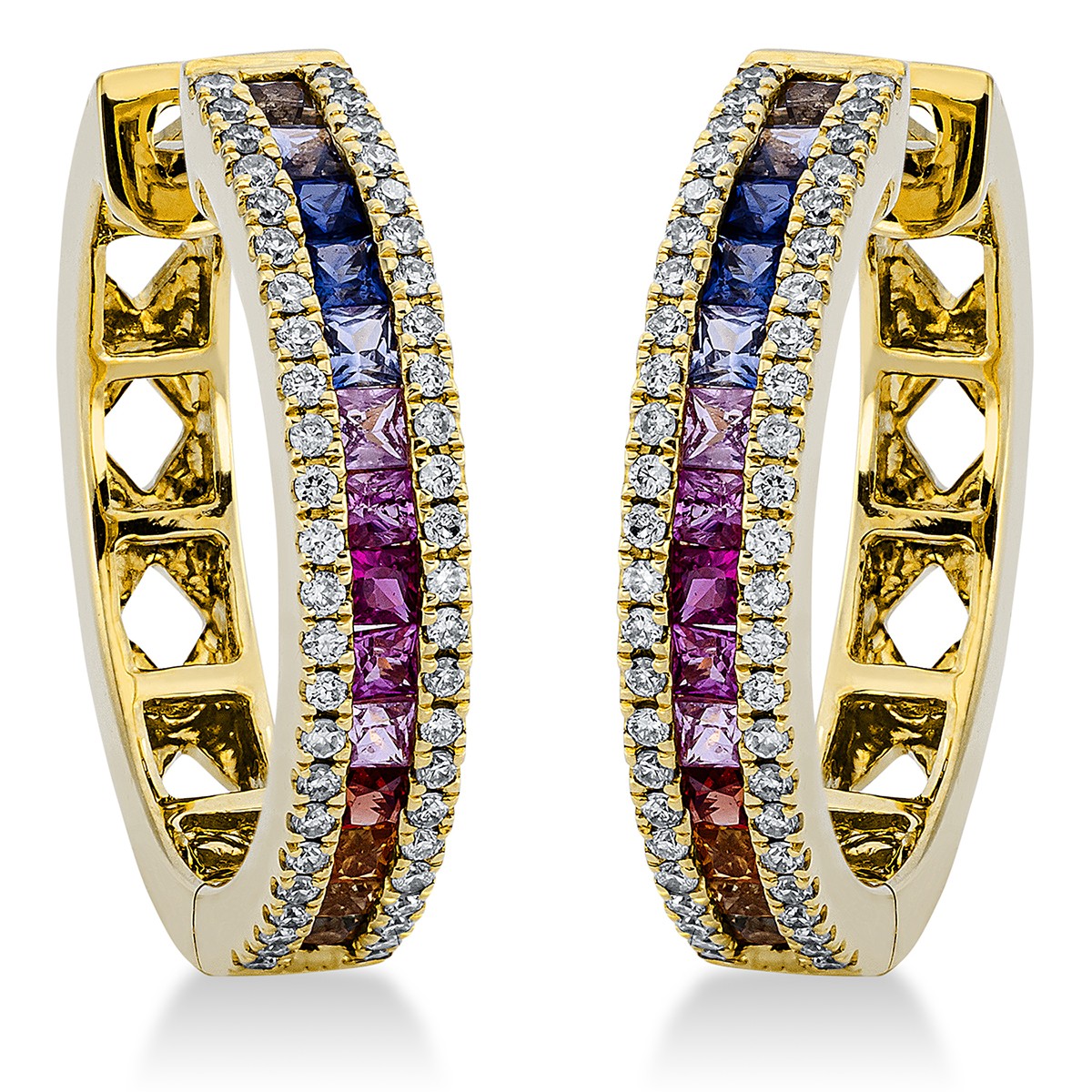 huggies 18 kt YG, 28 princess 0,69 ct, G-si, 96 diamonds 0,20 ct, G-si