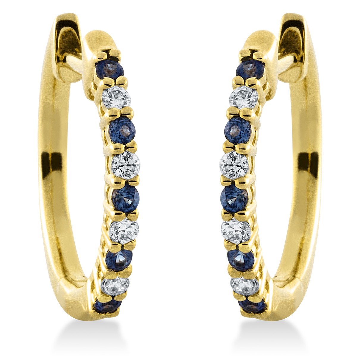 huggies 18 kt YG, 8 diamonds 0,09 ct, G-pi, 10 sapphire 0,13 ct blue