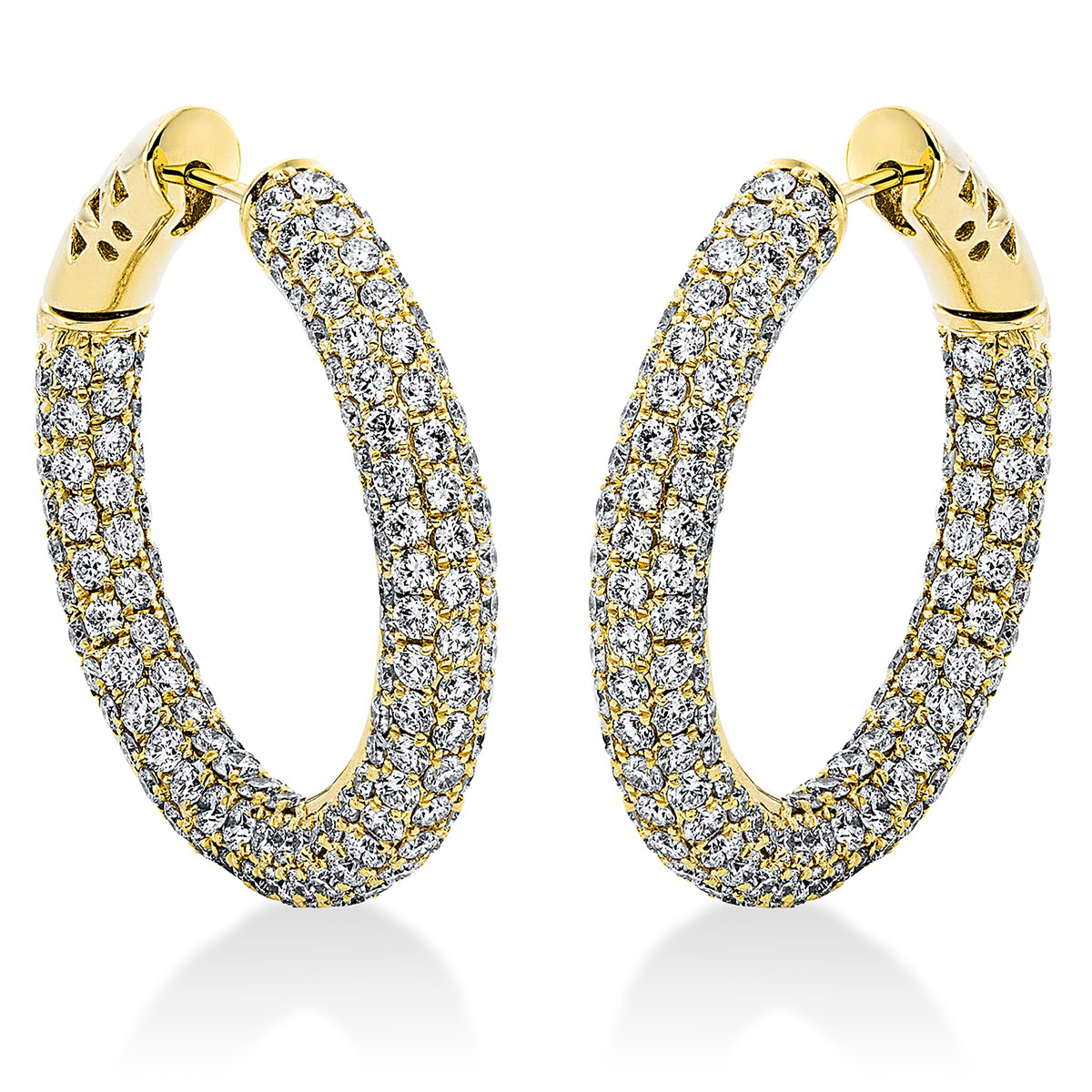 huggies 18 kt YG, 352 diamonds 6,35 ct, G-vsi, h:29,2 mm, w:28,2 mm, th:4,1 mm