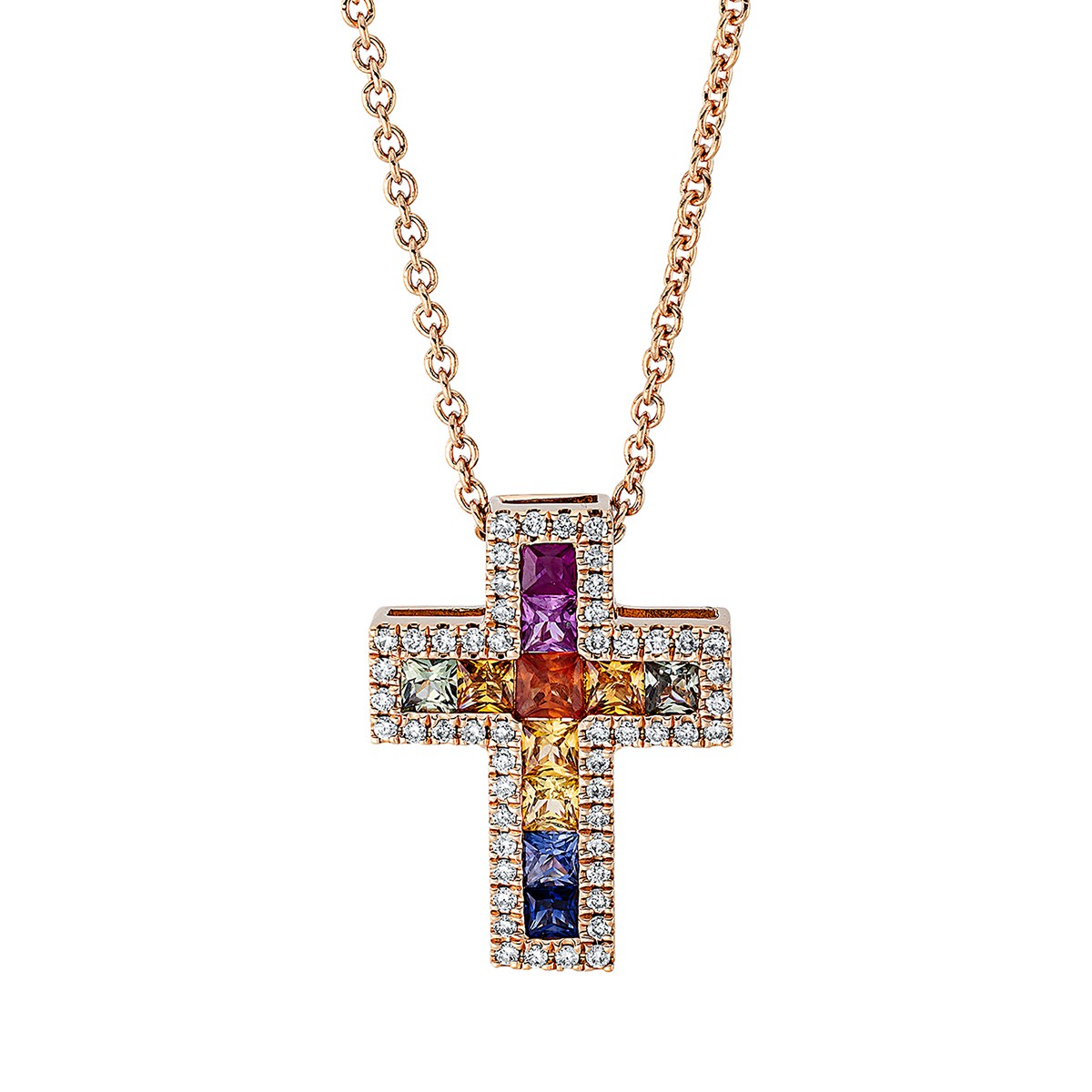 necklace 18 kt RG, with loop at 40 cm, 52 diamonds 0,16 ct, G-si, 11 sapphire 0,69 ct fancy, l:45,0 cm