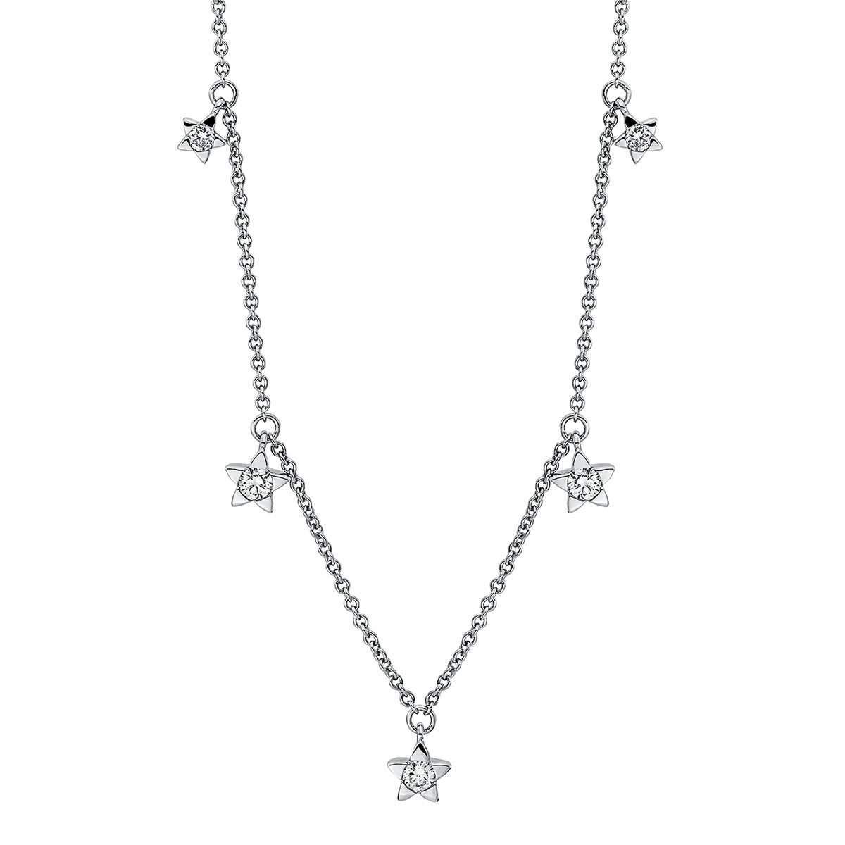 necklace 18 kt WG star, 3 diamonds 0,15 ct, G-si, 2 diamonds 0,06 ct, G-si, l:45,7 cm