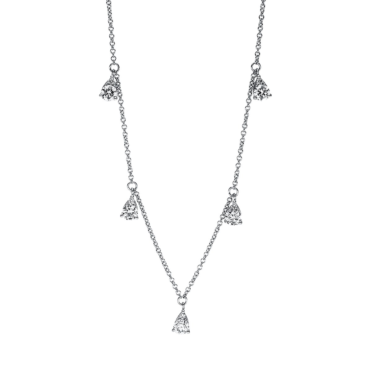 necklace 18 kt WG, with loop at 30 cm + 33 cm, 5 diamonds 0,51 ct, G-si, 5 diamonds 0,03 ct, G-si, l:35,6 cm