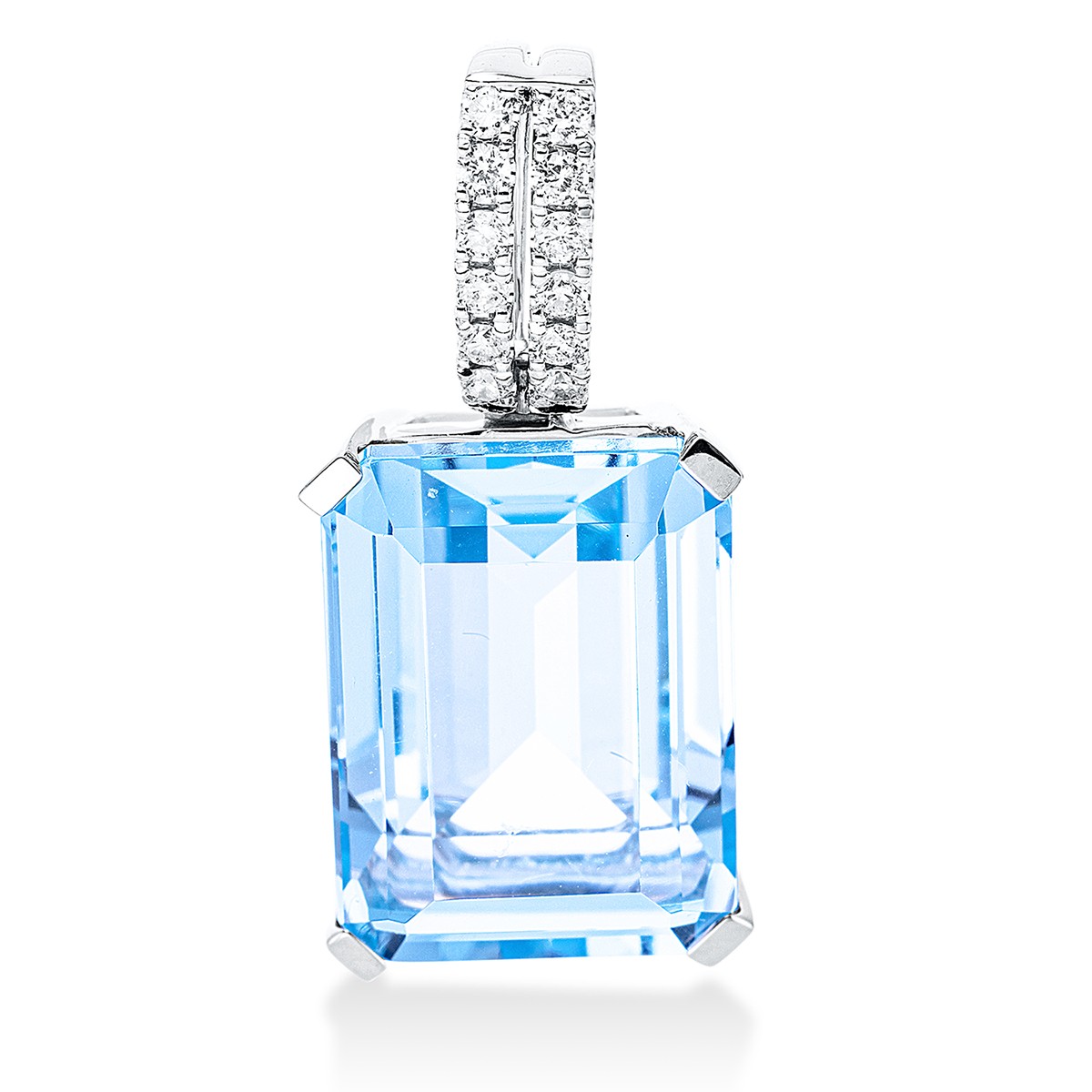 pendant 18 kt WG, with loop, 12 diamonds 0,13 ct, G-si, 1 topaz 10,40 ct sky blue, h:23,0 mm, w:10,0 mm, th:7,7 mm